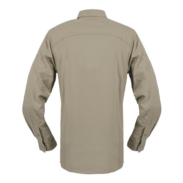 Helikon-Tex® Defender Mk2 Tropical Shirt® - це варіант з полегшеною конструкцією, призначеною для високих температур. Крій базується на повній застібці на ґудзиках та комірі, який стабілізує положення на шиї. На грудях розташовані чотири кишені зі змінним доступом: дві накладні кишені з клапанами на липучках та дві плоскі кишені типу "наполеон" на блискавці, заховані у вертикальних розрізах.