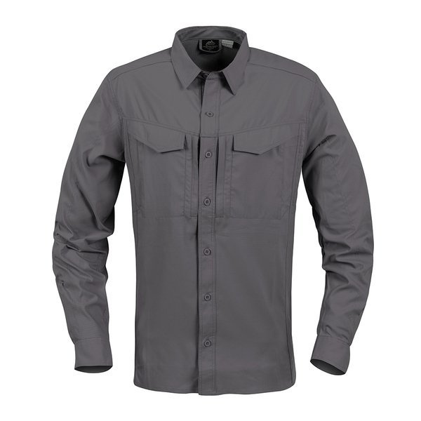 Helikon-Tex® Defender Mk2 Tropical Shirt® - це варіант з полегшеною конструкцією, призначеною для високих температур. Крій базується на повній застібці на ґудзиках та комірі, який стабілізує положення на шиї. На грудях розташовані чотири кишені зі змінним доступом: дві накладні кишені з клапанами на липучках та дві плоскі кишені типу "наполеон" на блискавці, заховані у вертикальних розрізах.