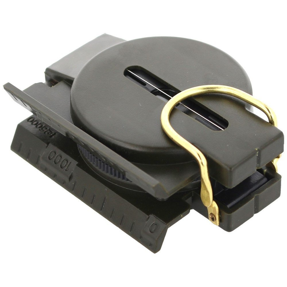 Надійний компас, розміщений у темно-зеленому пластиковому корпусі. На кришці є прицільний приціл.