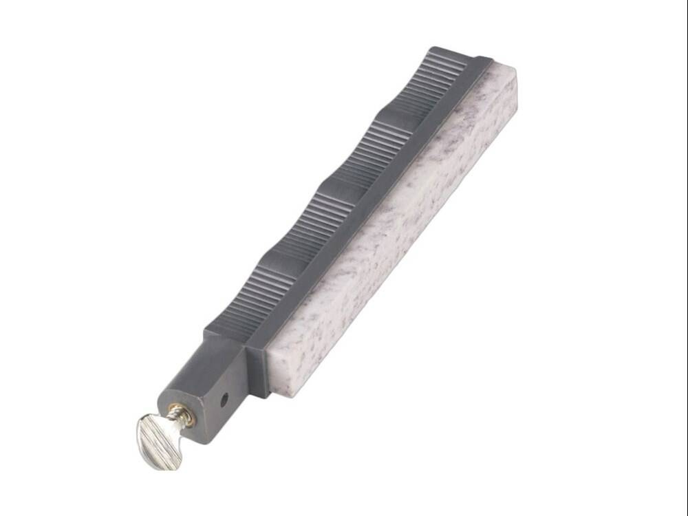 Набір для заточування Lansky Arkansas LKNAT зберігається в практичній коробці. Він містить як точильні камені, так і додаткові аксесуари. Ми встановлюємо заточений ніж в затискач, а потім монтуємо потрібний камінь, використовуючи заводські вирізи. Використовуючи точильне масло Lansky Nathans Honing Oil, що входить до комплекту, ми можемо забезпечити належну роботу точильних каменів. Це також захистить їх від передчасного зносу.