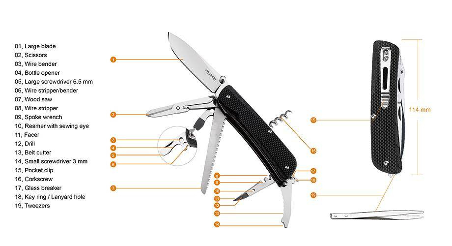 Ruike - Багатофункціональний кишеньковий ніж LD42-B - 17 інструментів - чорний - 340-018