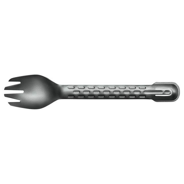 Ложка та виделка виготовлені з анодованого алюмінію, що робить їх надзвичайно легкими, але водночас міцними. Їх ручка текстурована, завдяки чому вони надійно лежать в руці. Зручний мультитул оснащений чотирма корисними функціями, які полегшують приготування їжі поза кухнею.