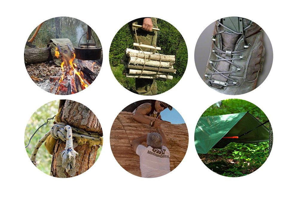 Форма браслета дозволяє зручно носити його на зап'ясті, завдяки чому в будь-якій ситуації ви будете мати при собі запас надійного шнура, який може бути використаний незліченною кількістю способів - для будівництва укриття, ремонту або закріплення техніки, надання першої медичної допомоги тощо.