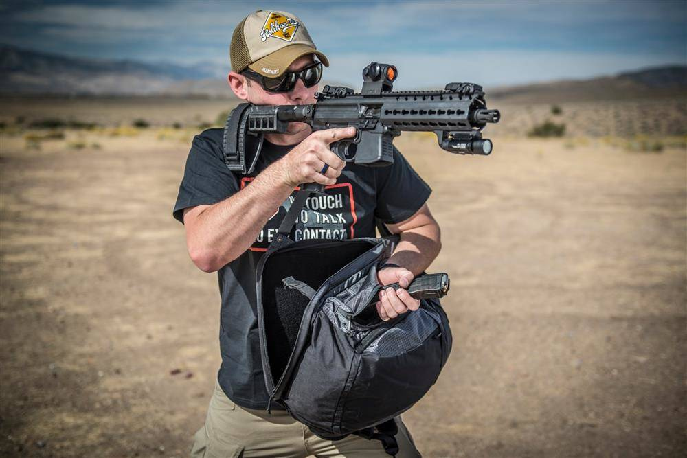 Вся конструкція рюкзака продумана для швидкого доступу до вогнепальної зброї. Швидкознімні лямки дозволяють легко обертати рюкзак на груди або на бік, а кишеня, що легко відстібається, дасть змогу дістати пістолет за лічені секунди. Система чудово спрацює в ситуаціях, коли ми не можемо носити зброю непомітно і безпечно в кобурі.