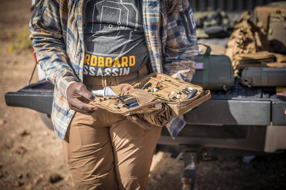 Використання контрастного матеріалу на дні кейса, в одній з кишень і в лотку для сервісного килимка значно полегшує пошук дрібних деталей зброї або запасних частин.
