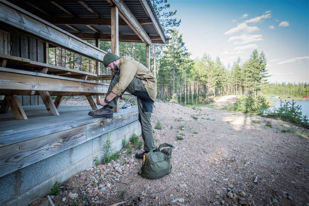 Регульовані за допомогою шнура Shock Cord штанини забезпечують щільне прилягання до ноги та взуття. Штани сумісні з низькопрофільними захисними накладками, що забезпечують додаткове зміцнення колін. Задня частина штанів злегка піднята та посилена тонким поролоном для підвищення комфорту та безпеки. Петлі для ременів (широкі, що дозволяють використовувати ремені шириною до 50 мм) з додатковими петлями для кріплення спорядження та вшиті місця кріплення лямок дозволяють надійно і навіть подвійно убезпечити штани від провисання. Використання тканини DuraCanvas® забезпечило міцність та легкість штанів. Для більшої водонепроникності штани можуть бути просочені спеціальним воском.