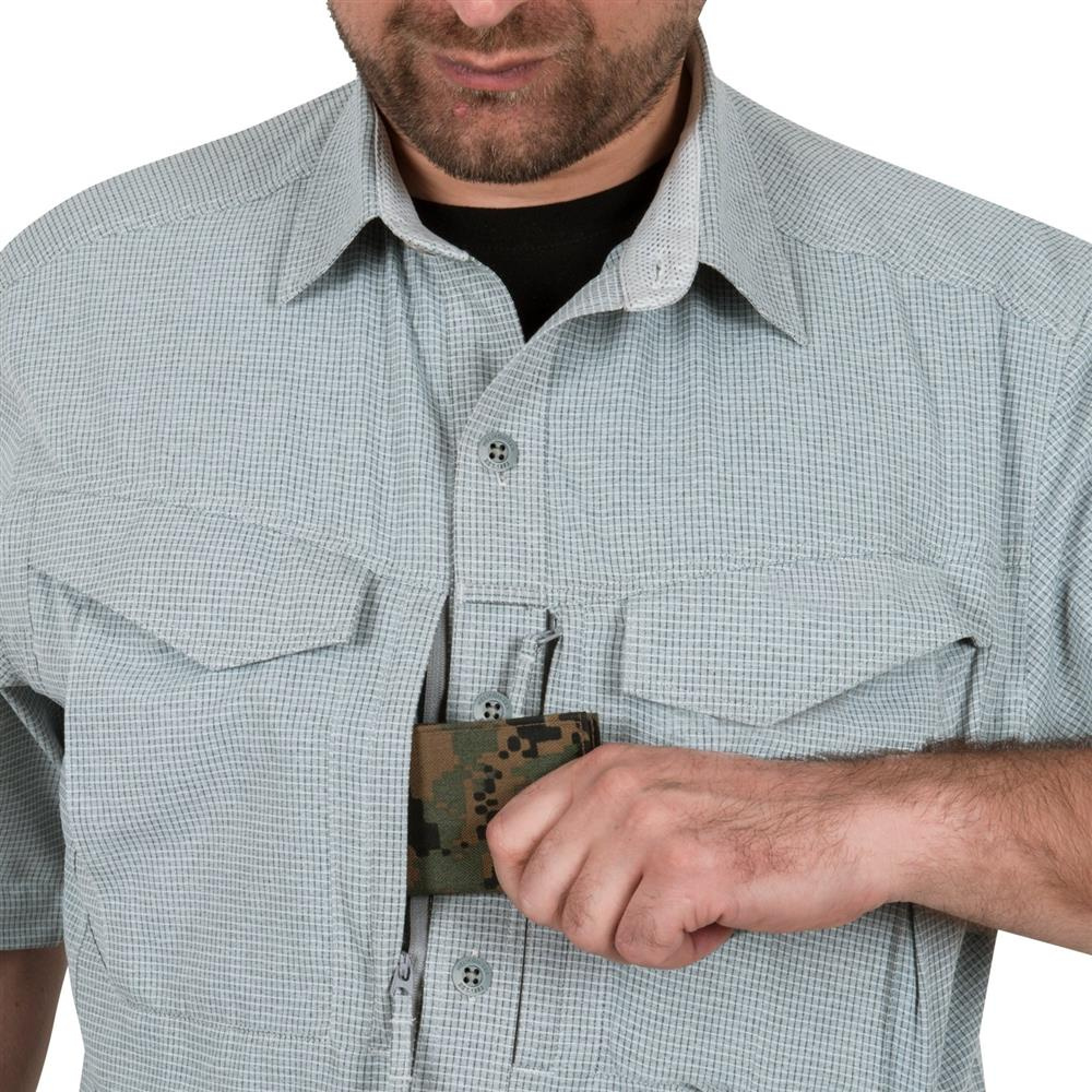 Сорочка Defender Mk2 Ultralight Short Sleeve® оснащена чотирма функціональними кишенями, розташованими на грудях. Дві з них мають похилі клапани на застібках-липучках, що забезпечує швидкий доступ до їх вмісту. Крім того, ще дві застібаються на блискавку, тому в них можна безпечно зберігати більш цінні речі. Між ними є спеціальна петля для підвішування сонцезахисних окулярів або окулярів для стрільби.