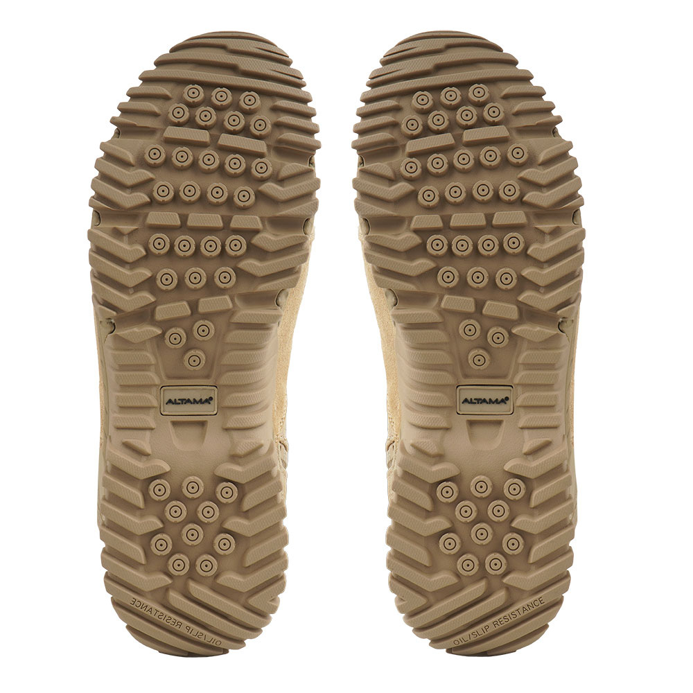 Гумова підошва має агресивний протектор для покращення зчеплення на різних поверхнях, а проміжна підошва з піни EVA зменшує навантаження під час інтенсивної ходьби. У моделі не використовуються металеві елементи, що дозволяє використовувати її на ділянках, які потребують металодетекції. Конструкція взуття буде добре працювати в таких видах діяльності, як тактичні операції, офіційна робота або використання на відкритому повітрі.