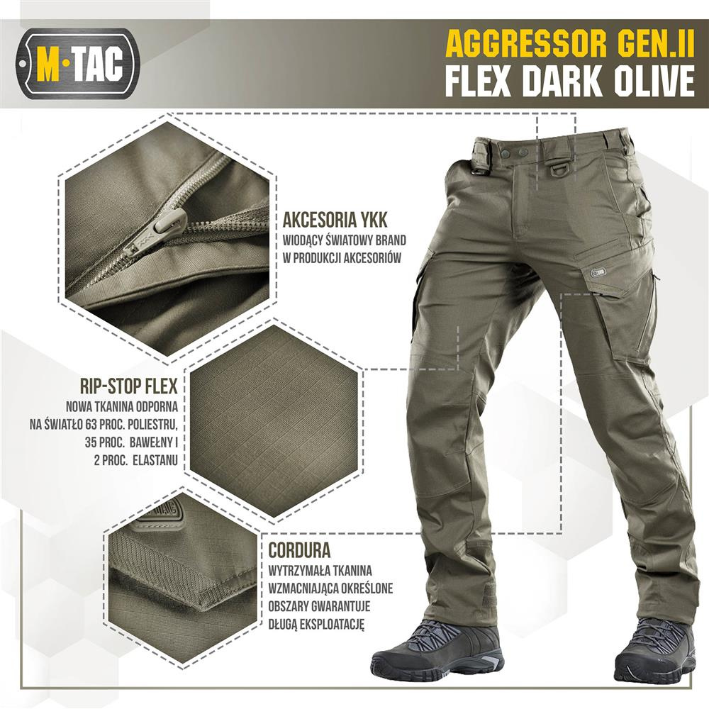 Тактичні штани M-Tac - Aggressor Gen.II Flex - Ripstop - Dark Olive - 20058048.
