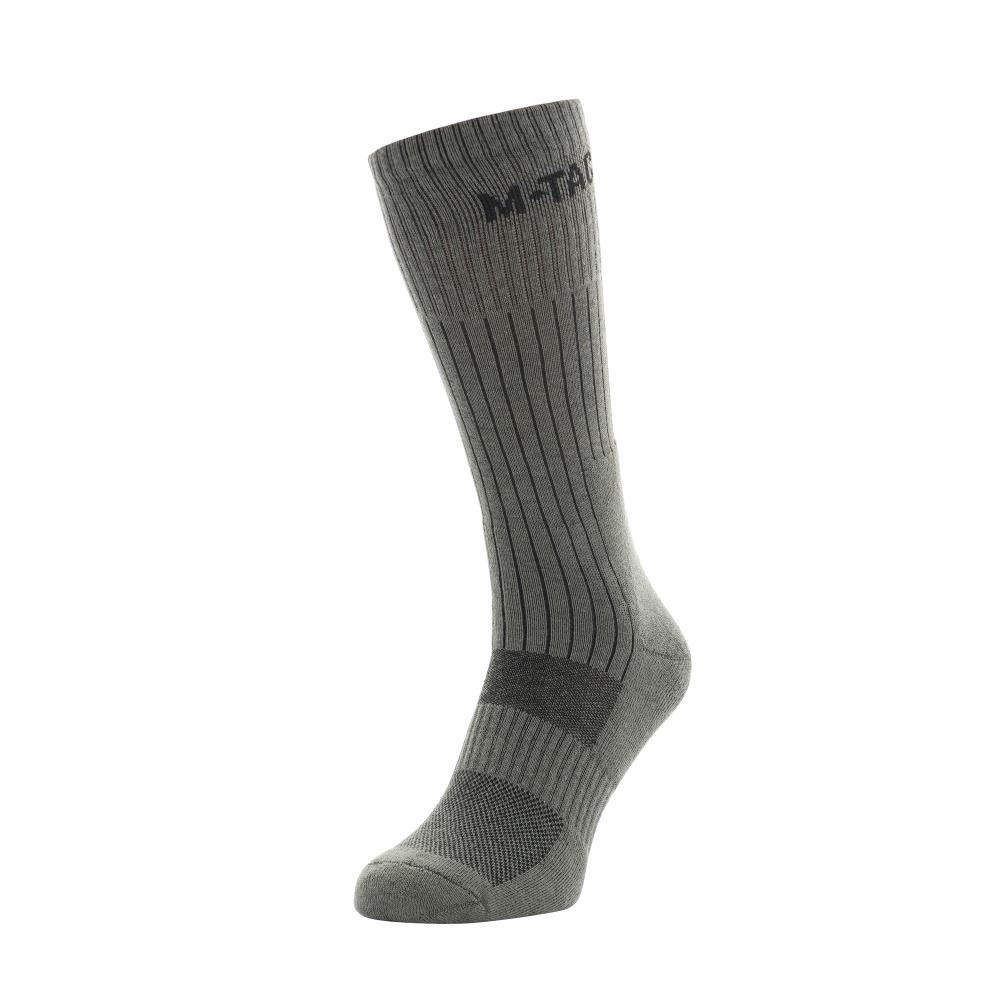Високі тактичні шкарпетки від українського виробника тактичного одягу та спорядження M-Tac. Виготовляються переважно з бавовняного волокна з домішкою поліаміду та еластану. Вони стануть у нагоді як повсякденні шкарпетки у холодні дні, а також як шкарпетки для фізичних навантажень, тренувань та тривалих марш-кидків у польових умовах.