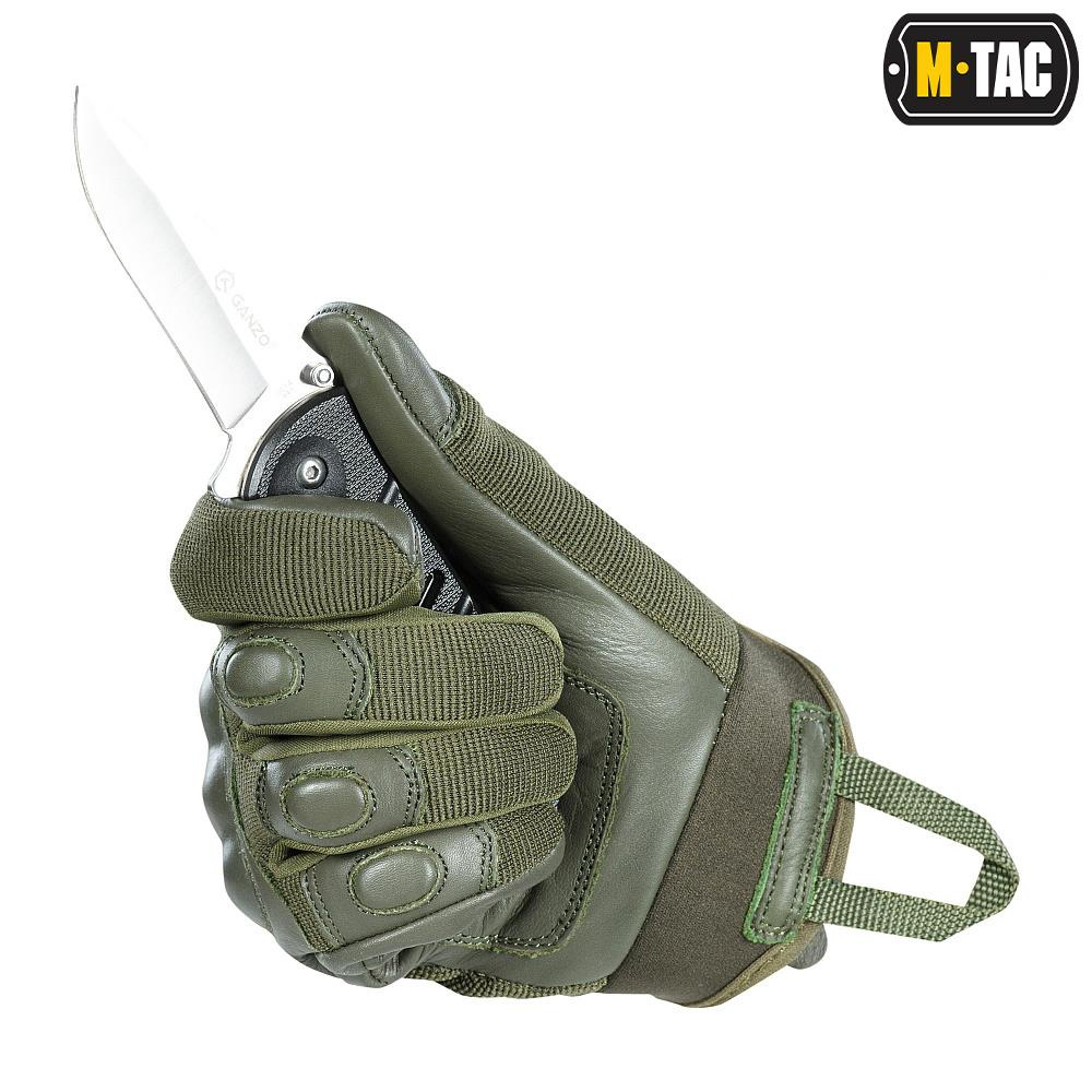 Рукавички M-Tac були створені для офіцерів уніформи та спортивних стрільців. Нижня частина виконана зі шкіри для кращого зчеплення та міцності, а верхня частина виготовлена з дихаючого матеріалу, який забезпечує комфорт і правильну циркуляцію повітря. Рукавички також мають захисні панелі на кісточках пальців і фалангах для захисту рук від потертостей і додатково оснащені подушками.