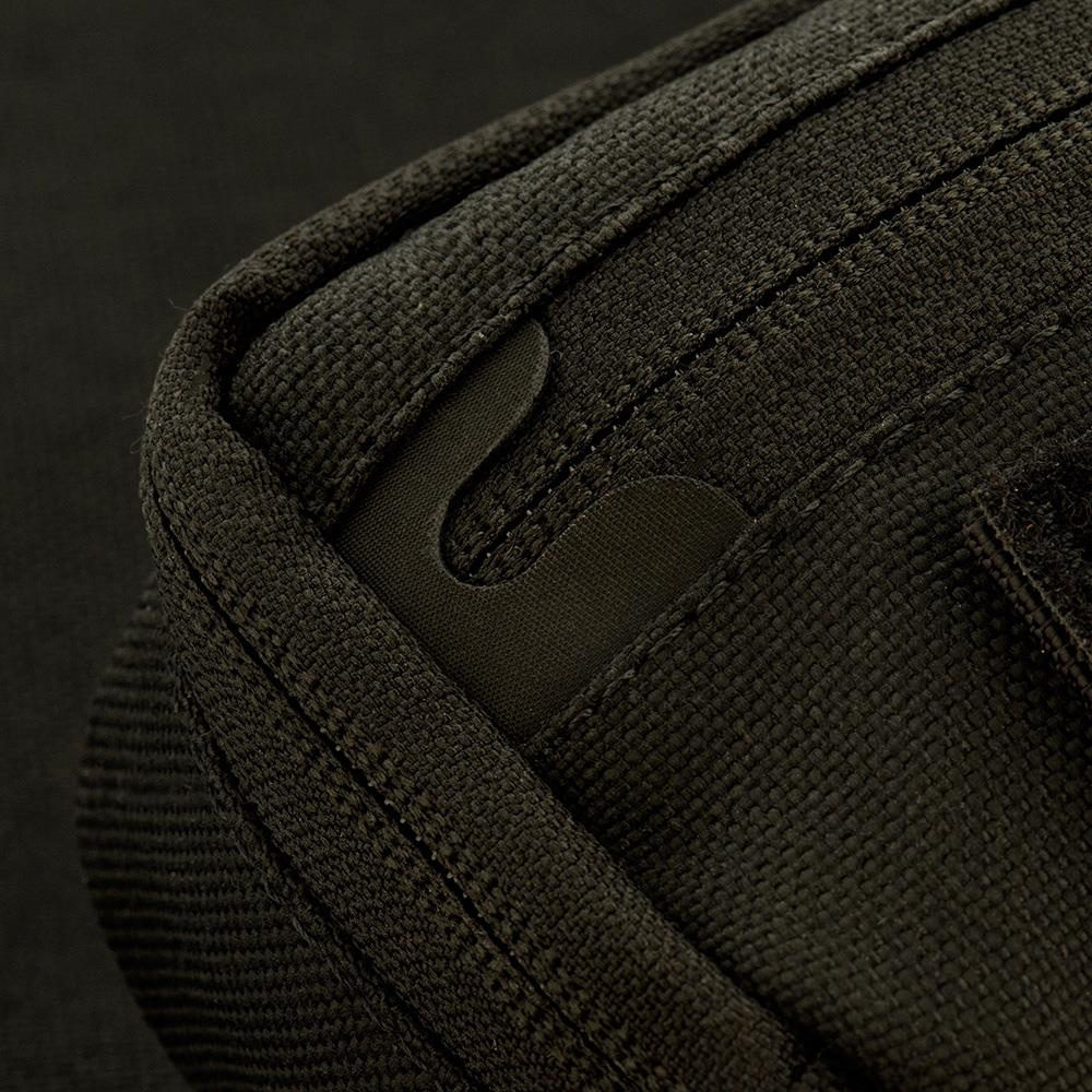 Внизу завантажувача є еластичний рукав, в який можна вставити тактичний стабілоскоп або інше спорядження аналогічного розміру. Крім того, для управління блискавками кишені реалізовані шнурки, за які можна вхопитися або просунути палець в отвір. Кордура 1000D, з якої виготовлена кишеня, оброблена за технологією Laser Cut, що забезпечило гладкі краї та відсутність ниток, що стирчать.