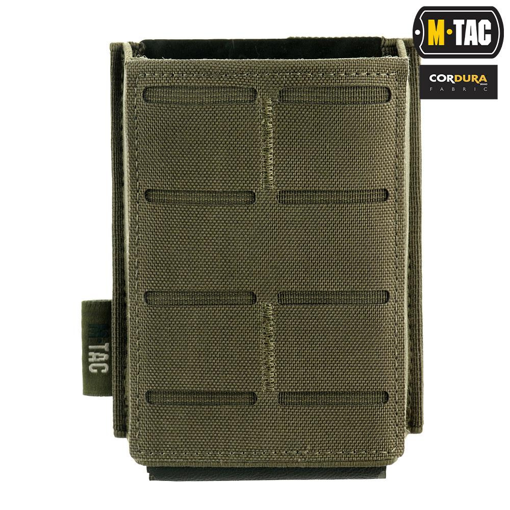 Універсальний однозарядний магазин для карабінів AK та AR виробництва компанії M-Tac. В основі конструкції лежить гнучка конструкція, яка адаптується до форми магазину, а вставка з кайдексу надійно утримує магазин всередині та дозволяє легко вставляти та виймати його. Кріпиться на розвантажувальні ремені системи MOLLE/PALS. Зовнішні кріпильні ремені з лазерною нарізкою дозволяють кріпити додаткове обладнання.