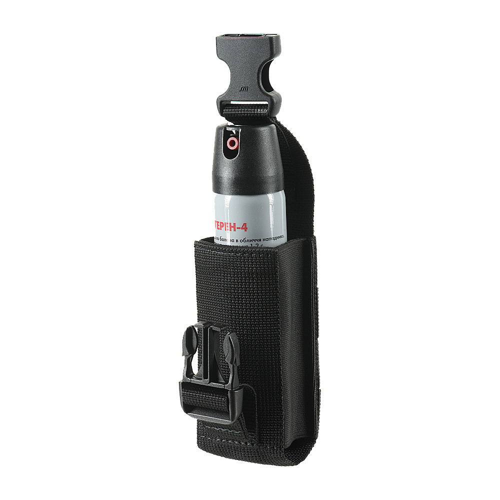 Кріплення до ременя або спорядження здійснюється за допомогою системи Molle. Рукоятка фіксується у вертикальному положенні, а її розмір може бути адаптований до розміру балончика з перцевим розчином.