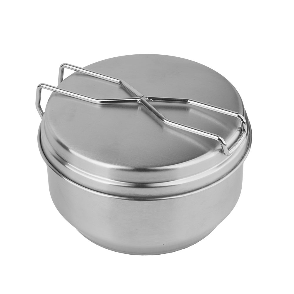 Менажка з трьох частин від Mil-Tec, створений за зразком спорядження чеських збройних сил. Обов'язковий елемент спорядження під час будь-якого кемпінгу або іншої тривалої фізичної активності на природі. Складається з двох вставних горщиків і кришки. Кришку також можна використовувати як сковорідку або тарілку для їжі.