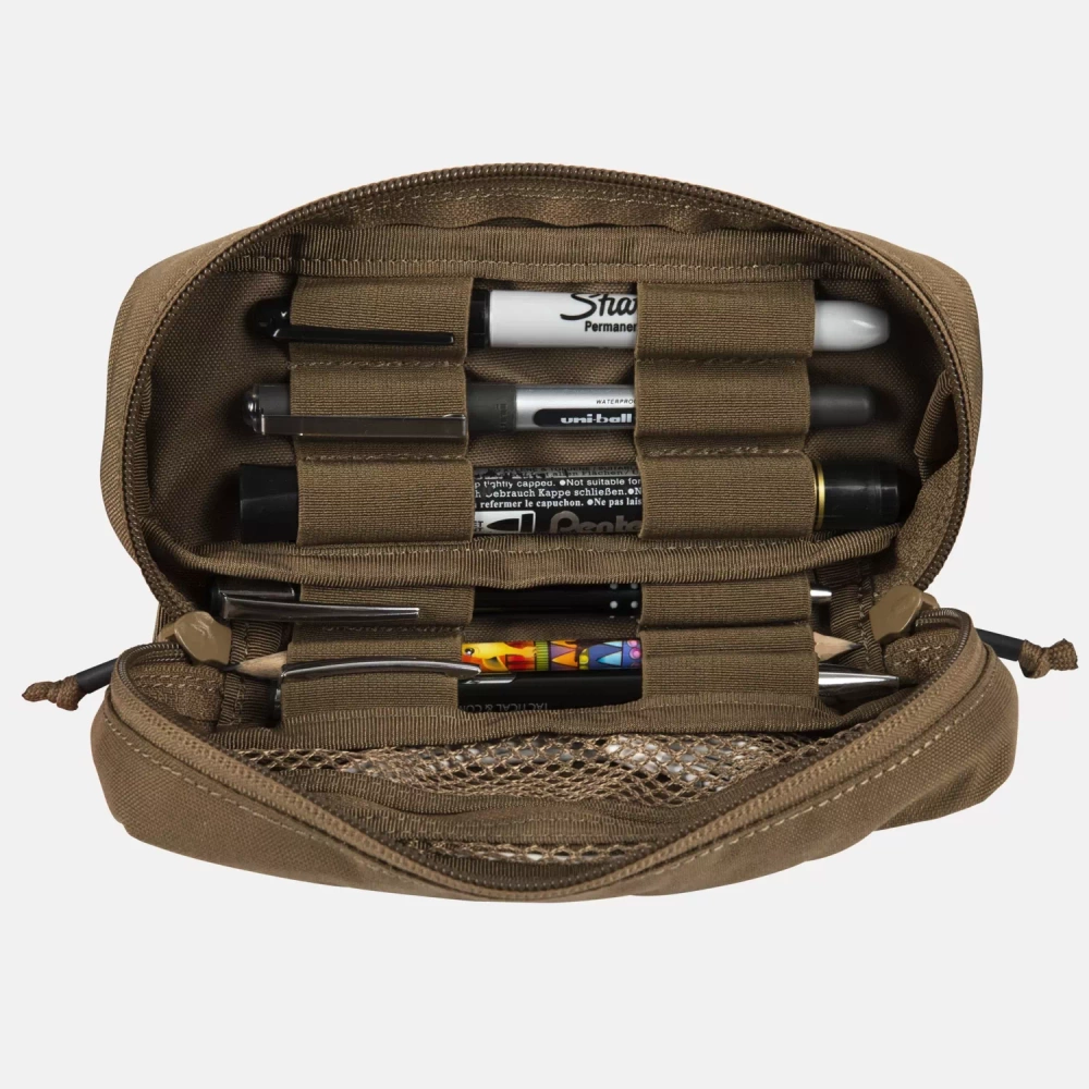 Пенал-органайзер для організації канцелярського приладдя від Helikon. Виготовлений з нейлонової тканини Cordura, що характеризується високою зносостійкістю та стійкістю до стирання. Всередині користувач має шість відділень для тактичних ручок, олівців і навіть таких інструментів, як викрутки, а також одну сітчасту кишеню на блискавці.
