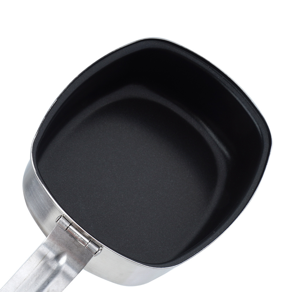 Весь набір виготовлений з нержавіючої сталі, що забезпечує високий ступінь міцності при контакті з продуктами харчування. Завдяки цьому та відповідній товщині стінок, меніск дозволяє готувати не тільки на плиті, але й безпосередньо на вогні. Покриття зі спеціальним тефлоновим напиленням запобігає прилипанню їжі до стінок каструлі.