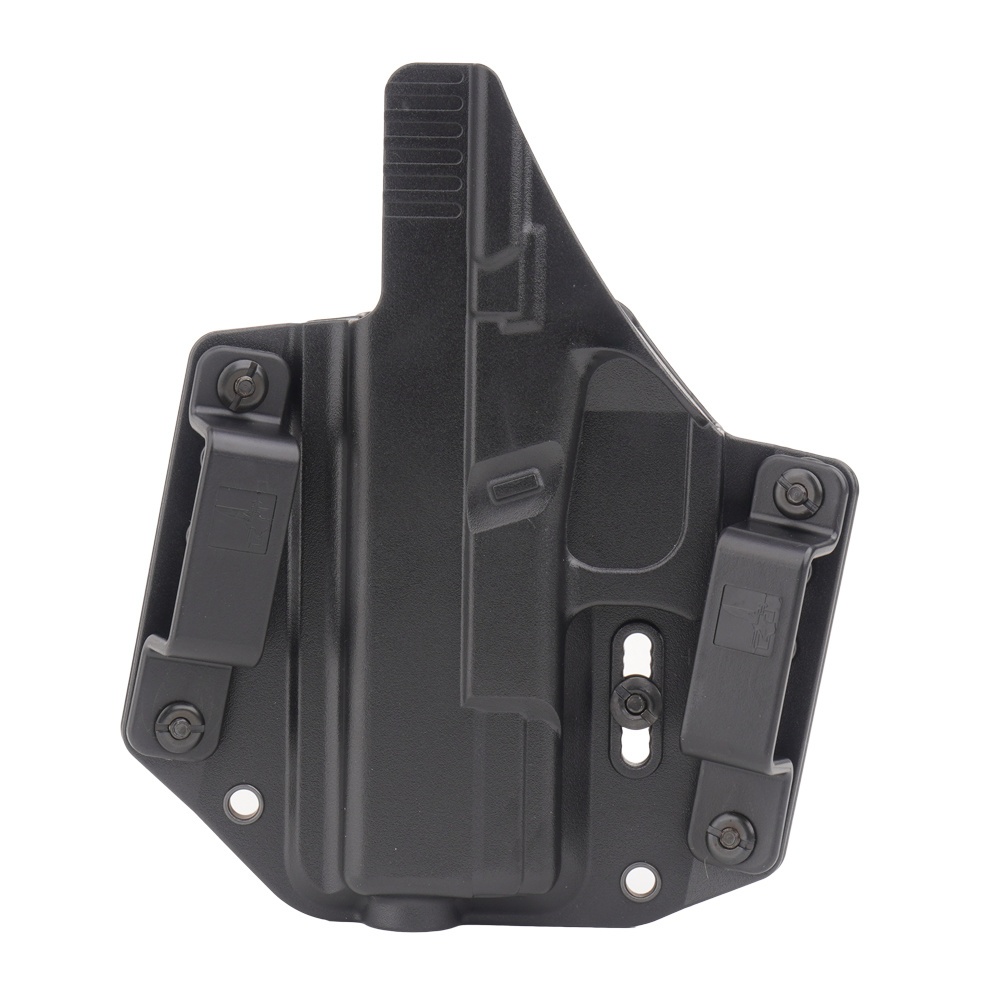 Зовнішня кобура виготовлена з полімеру найвищої якості. Завдяки тому, що вона відповідає формі зброї, пістолет стабільно тримається і не хитається при носінні. Ще більш точне припасування до уподобань користувача можливе завдяки регулюванню фіксації, яке здійснюється за допомогою гвинта.