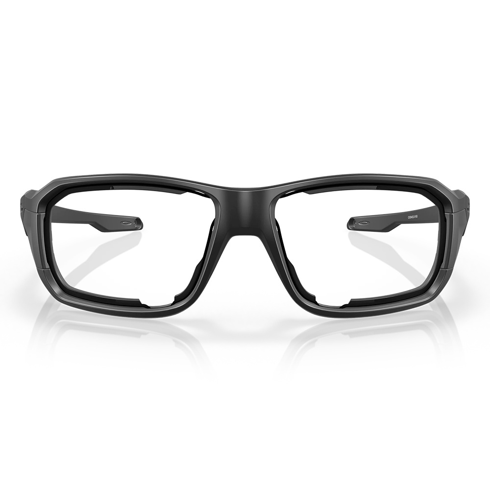 Рама виготовлена з легкого та міцного матеріалу O Matter™. Технологія Oakley Three-Point Fit забезпечує максимальний комфорт, зберігаючи лінзи в точній відповідності з очима. Конструкція оправи захисних окулярів адаптована для розміщення промислових лінз RX. Низькопрофільна конструкція оправ підходить для використання з шоломами: MICH, ACH, CVC, PASGT, Ops-Core, Team Wendy та Crye™.