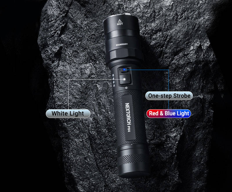 Компактний тактичний ліхтар P84 потужністю до 3000 лм від NEXTorch. Його додатковою особливістю є кільце маленьких світлодіодів, які можна використовувати для сигналізації, випромінюючи червоно-синє світло. Це дозволить не тільки підсвітити ключові елементи місця, але й попередити вас за допомогою характерного миготіння світлодіодів.