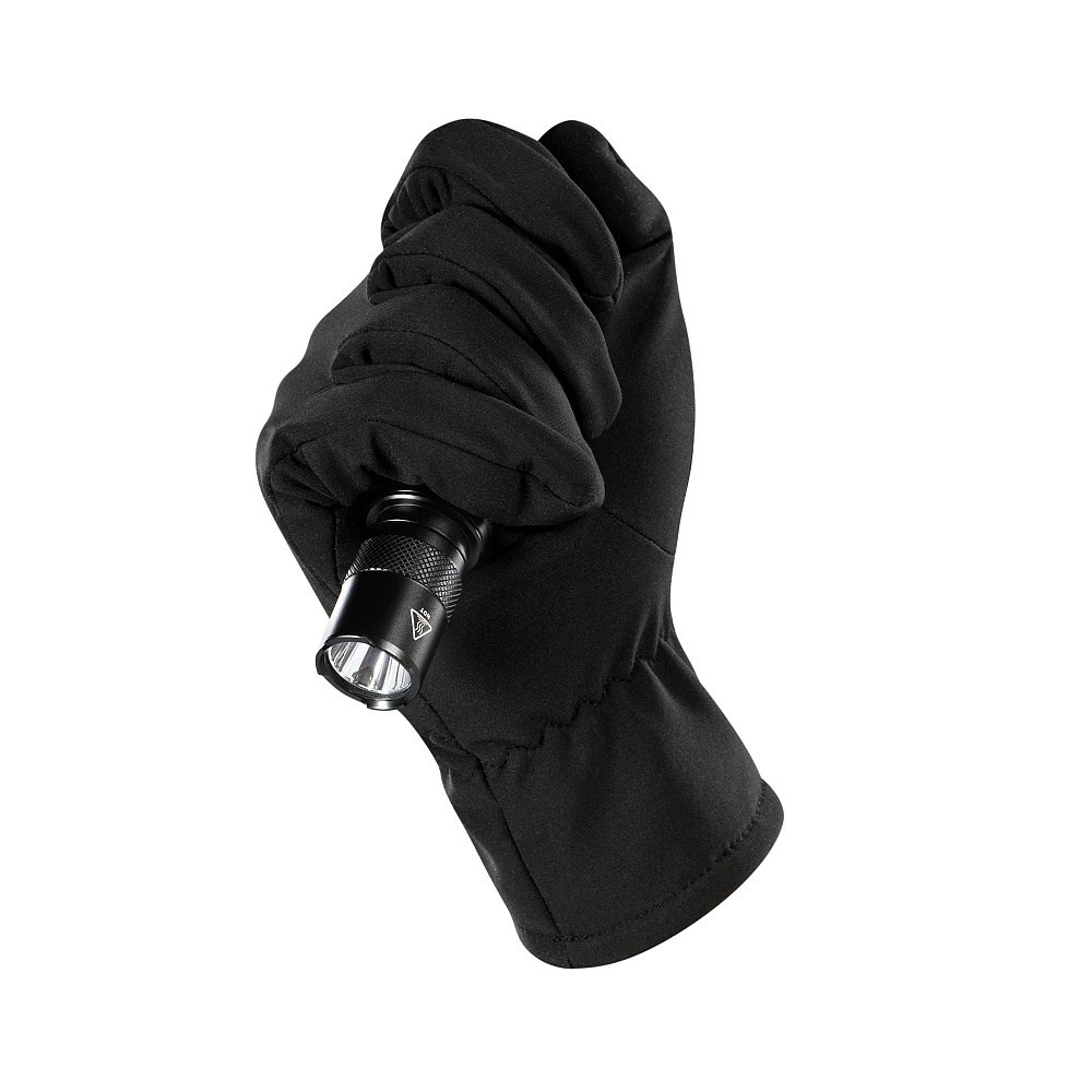 Посилення з натуральної шкіри на пальцях і долоні забезпечують захист від стирання і надійний захват при утриманні ліхтаря. Еластичні манжети ідеально облягають зап'ястя, захищаючи від вітру та холоду. На вказівному пальці є накладка на сенсорний екран, що дозволяє користуватися сенсорними екранами смартфонів, GPS-навігаторів та планшетів, не знімаючи рукавичок.
