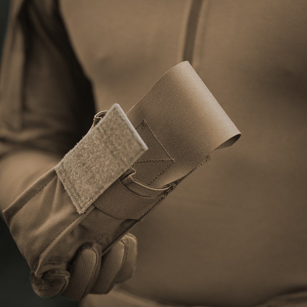 Підсумок закритого типу M-Tac є надійним і функціональним рішенням для транспортування магазинів для гвинтівок AR/AK. Він виготовлений із міцної 500D Cordura, яка забезпечує стійкість до механічних пошкоджень і стирання.