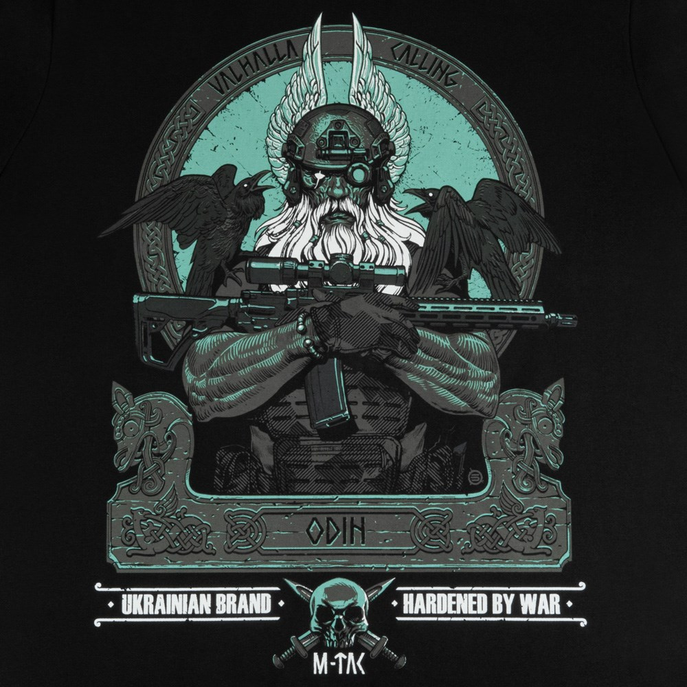 Футболка Odin Mystery - ідеальний вибір для любителів мілітарі та міфології і культури вікінгів. Футболка має унікальний принт із зображенням Одіна, бога війни та мудрості у скандинавській міфології, та двох круків, що сидять на його плечах. Рішучий бог, одягнений у сучасне бойове спорядження, символізує силу, мужність і готовність до боротьби.
