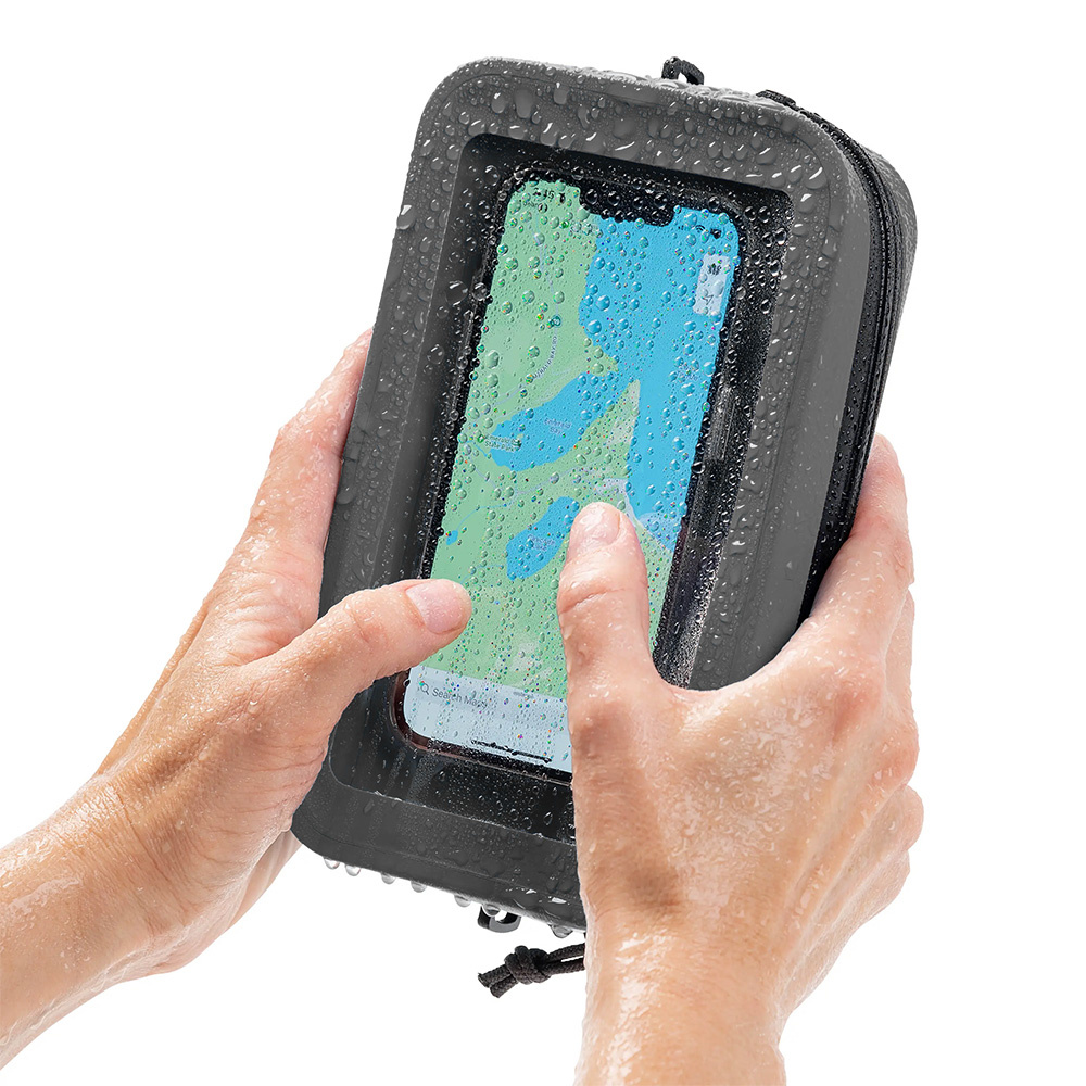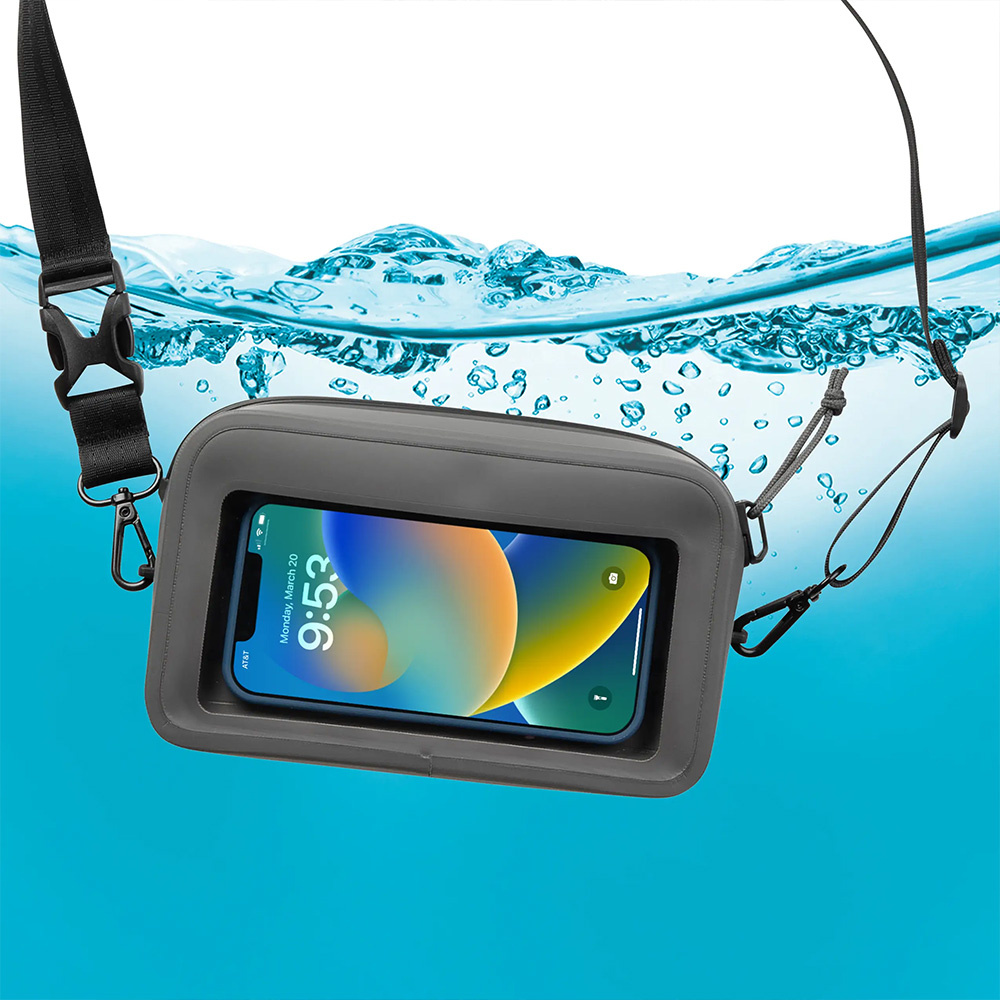 Водонепроникний контейнер для транспортування телефону та інших електронних пристроїв. Прозора передня частина дозволяє користуватися пристроєм, не виймаючи його. Всередині також є місце для зберігання ключів, готівки або невеликого набору для виживання. Ремінець, що входить до комплекту, дозволяє перетворити контейнер на набедренну сумку.
