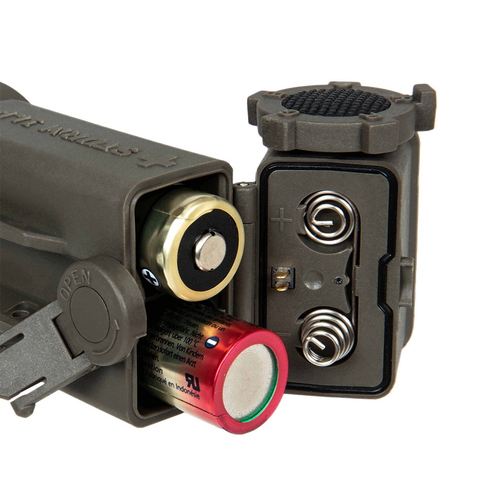 Режим освітлення вибирається за допомогою профільованих зубчастих ручок. Максимальна потужність білого світла - 90лм. Працює від двох батарейок CR123A. Батарейки можна легко замінити, відкривши корпус без інструментів. Ліхтар має режим стробоскопа з частотою 1 Гц, який активується вибором і активацією потрібного режиму та інтенсивності, після чого утримуванням кнопки. Всередині є ущільнювач, щоб зробити пристрій більш водонепроникним, і роз'єм для забезпечення надійної роботи кутового ліхтаря.