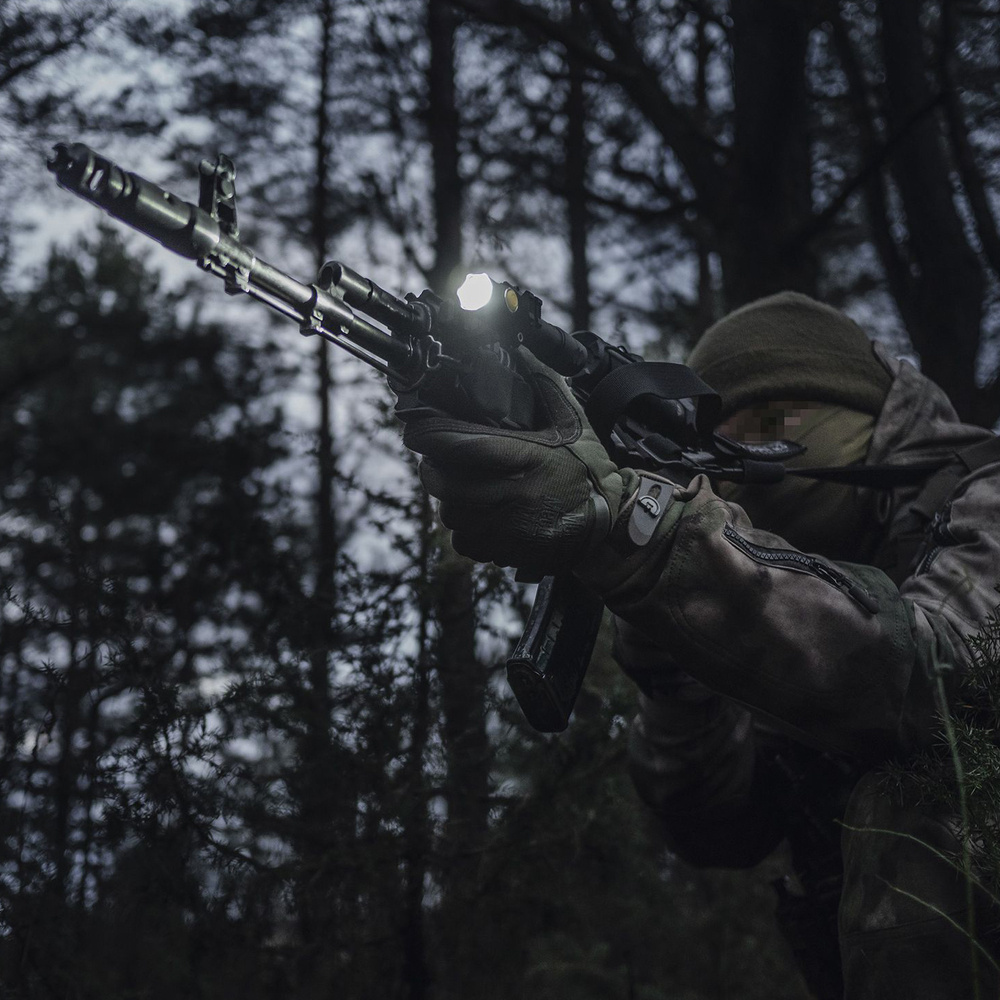 • Тактичний ліхтар високого класу, версія Partner C2. Оснащений потужним білим світлодіодом та акумулятором на 3200 мАг. 5 режимів освітлення. Стійкий до води, пилу та падінь. Поставляється на шнурку з карабіном. Колір: чорний.