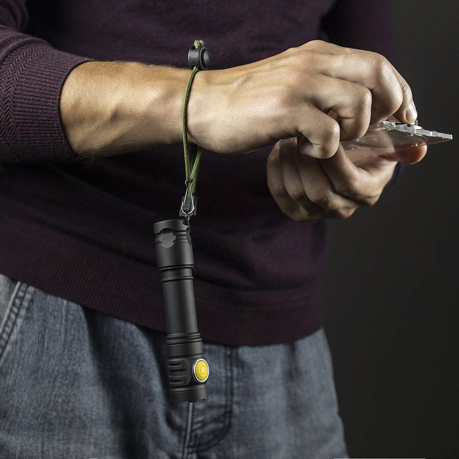 Акумуляторний світлодіодний ліхтар, який відмінно підійде для повсякденного використання, завдяки своїм компактним розмірам і вазі. Має багато корисних доповнень, можливості яких оцінять багато користувачів. Ліхтарик світить білим світлом з максимальною потужністю 1100 лм і дальністю до 240 метрів. Вся конструкція виготовлена з міцного авіаційного алюмінію 6061 T-6, а гніздо для батареї захищене подвійним ущільненням, що означає водонепроникність за стандартом IP68.