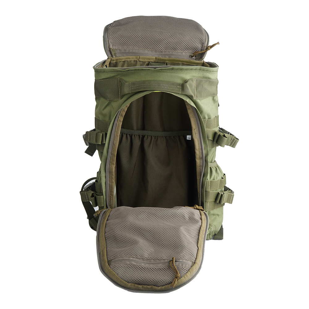 Еластичні та регульовані стропи в передній частині дозволяють носити, наприклад, куртки або спальні мішки. Система перенесення AFS, що базується на каркасі зі скловолокна, забезпечує високий комфорт, а стегновий пояс допомагає рівномірно розподілити вагу. М'які панелі на спині, виготовлені з еластичної піни, легко вбирають вологу і покриті тканиною, що швидко сохне. Рюкзак сумісний з системою MOLLE, що дозволяє кріпити додаткові аксесуари. Завдяки практичним ручкам його можна легко переносити.