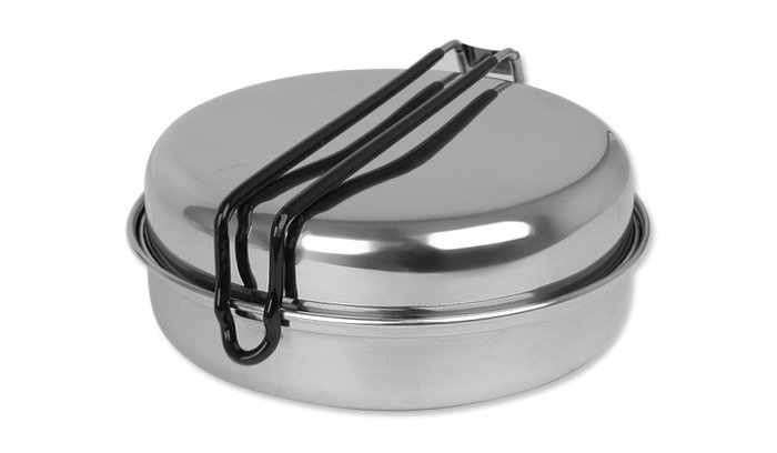 Одномісний кемпінговий набір, виготовлений з полірованої сталі. Займає мало місця в рюкзаку, легкий і зручний.