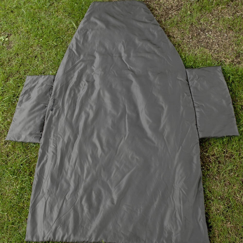 Розміри ковдри дозволяють комфортно вкрити все тіло. Бічні клапани та кишеня для ніг допомагають утримувати ковдру на одному місці, запобігаючи її сповзанню. Компресійний чохол, що входить до комплекту, дозволяє максимально зменшити розмір при пакуванні, що полегшує транспортування в рюкзаку.
