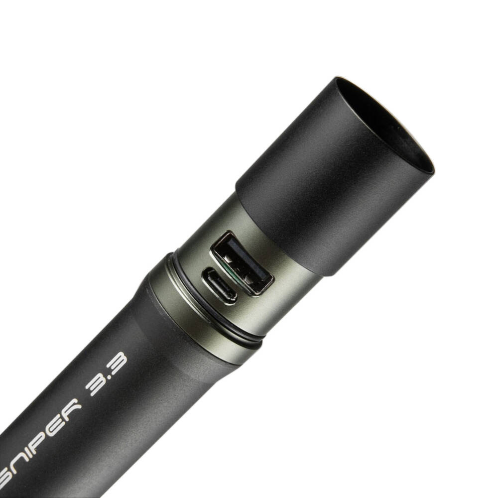 Корпус ліхтаря Sniper 3.3 виготовлений з міцного алюмінію, що робить його стійким до механічних пошкоджень і падінь з висоти до 2 метрів. Крім того, водонепроникність IP66 дозволяє використовувати ліхтар незалежно від погодних умов.