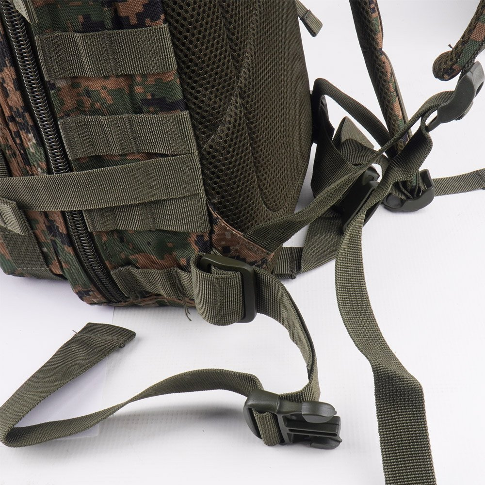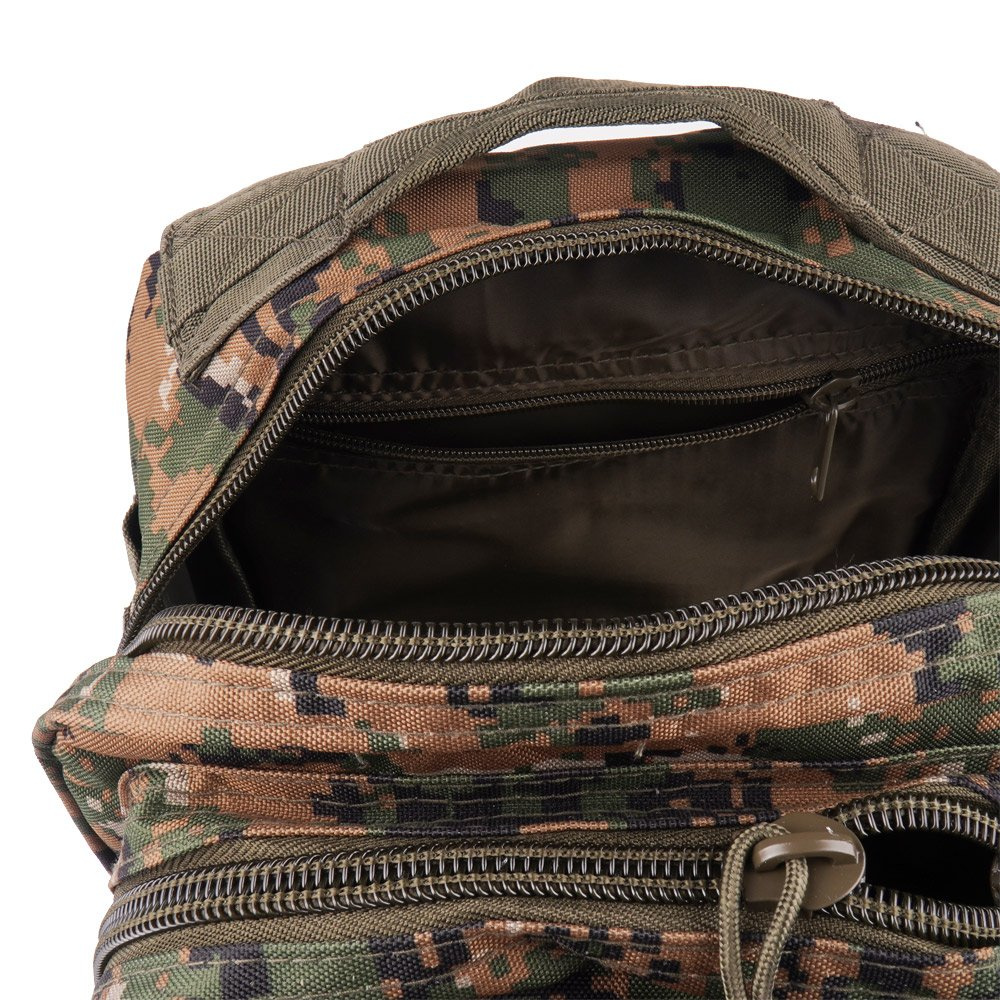 Малий штурмовий тактичний рюкзак Mil-Tec у камуфляжі Digital Woodland має місткість близько 20 літрів. Виготовлений з щільного поліестеру, а кишені зсередини оброблені вінілом для захисту від вологи.